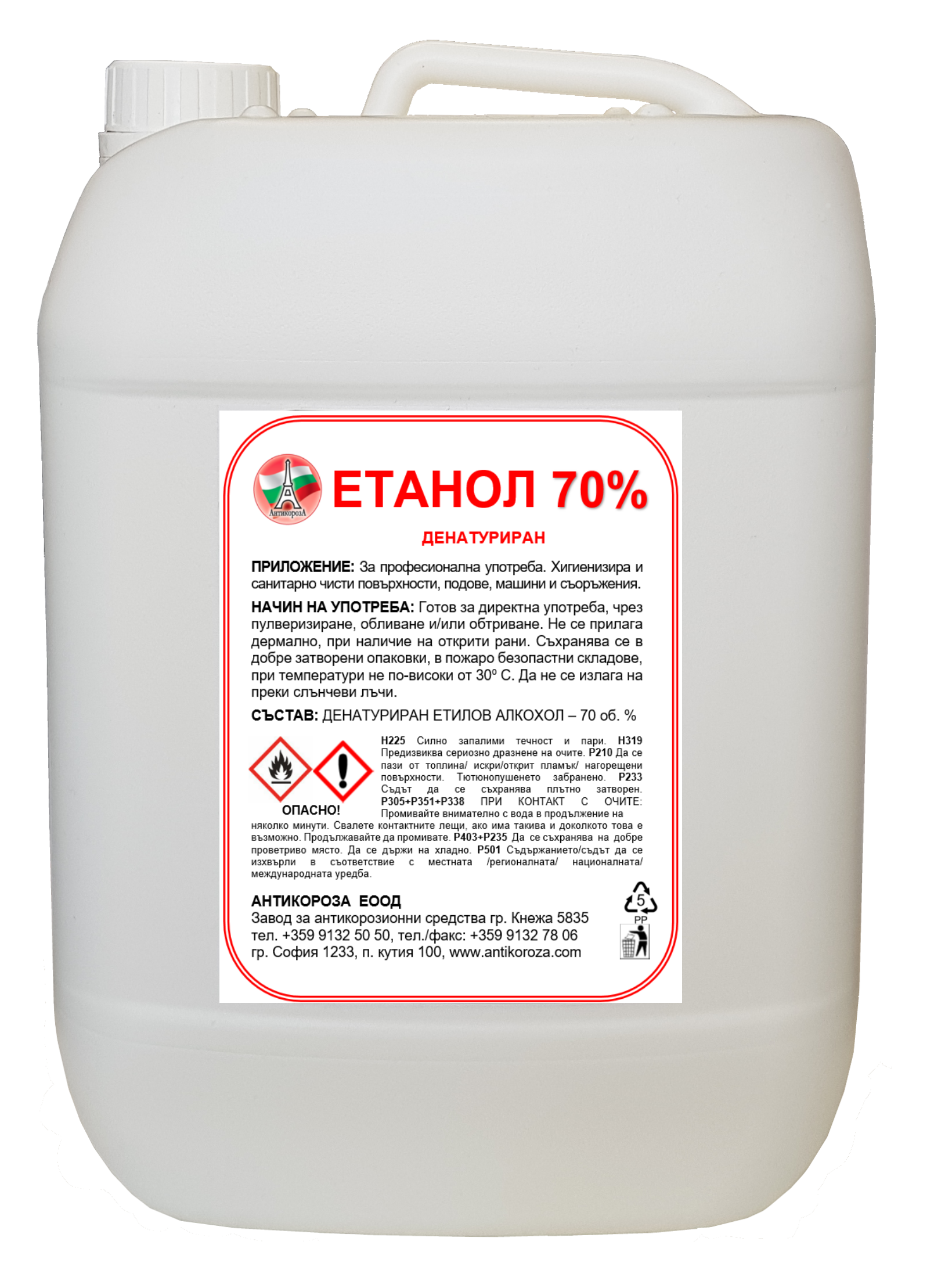 Етанол 70% се доставя се от завод Антикороза ЕООД