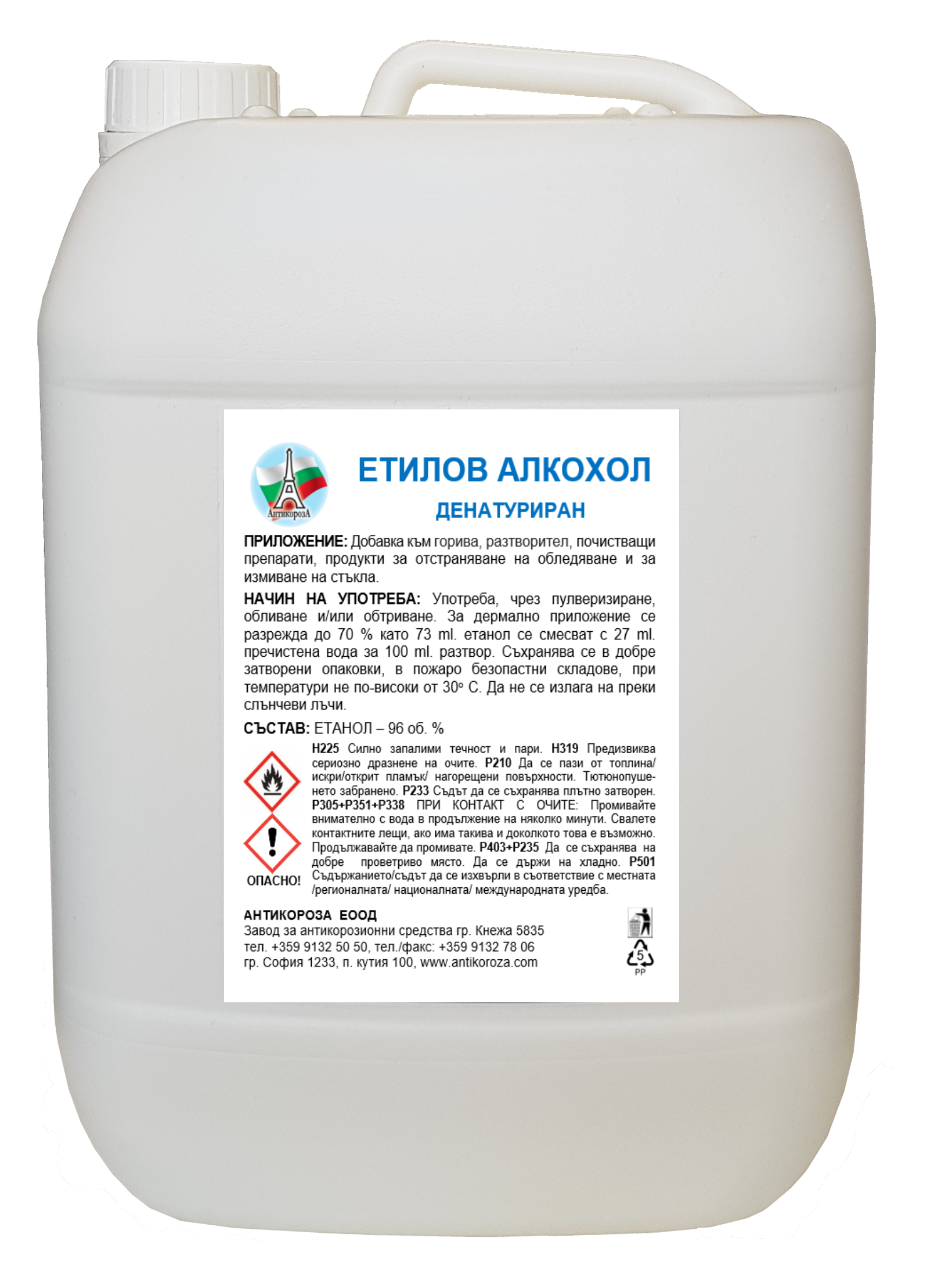 СЪСТАВ: ЕТАНОЛ – 96 об. %