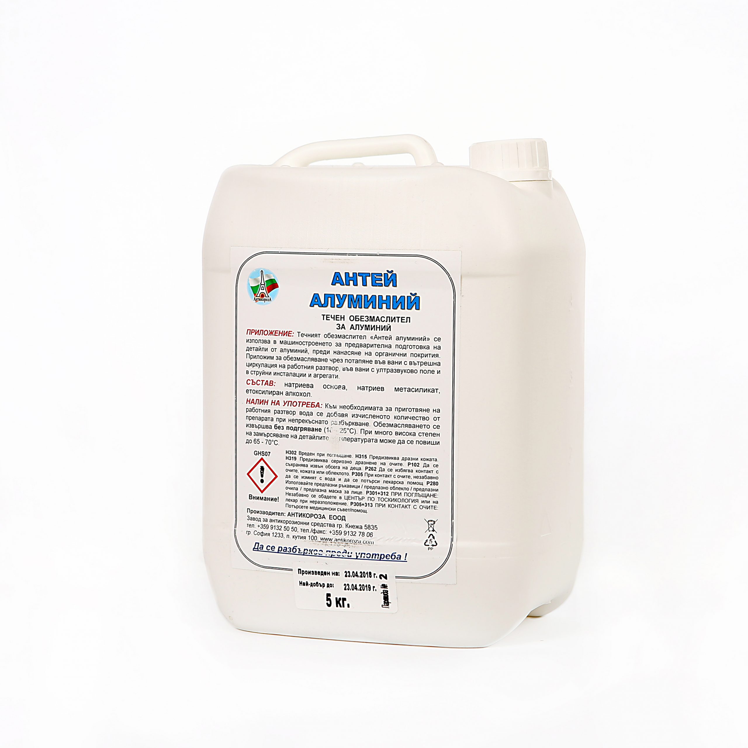 Обезмасляване на алуминий и сплавите му Антей алуминий е течен препарат за обезмасляване без подгряване на алуминий и се произвежда на база алкални соли, повърхностно-активни вещества и добавки.